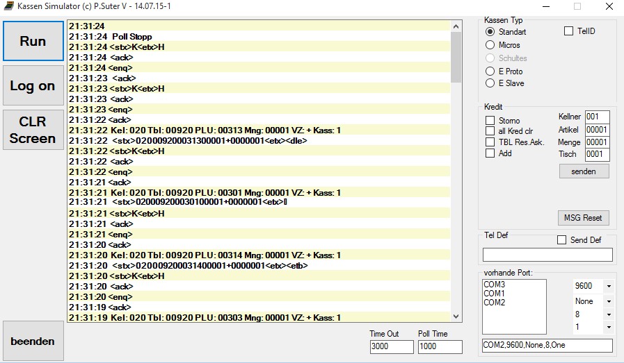 Für die Tests stehen Simulationsprogramme zur Verfügung. Diese helfen, die Verbindung zu Fremdgeräten zu prüfen, ohne dass solche, wie Kaffeemaschinen, Kassen etc., jedes Mal aufgebaut werden müssen.