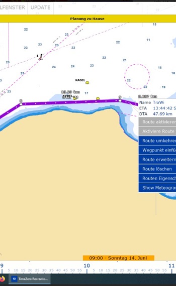 Hier einige Informationen über ein sehr vielfältiges, einfach zu bedienendes Windows Programm für Fahrten im Küstenbereich und auf offener See. Es stehen verschiedene Module, TimeZero Navigator für die Sportschifffahrt, TimeZero Professional für die Berufsschifffahrt zur Verfügung.Es sind nur wenige der sehr vielen Funktionen hier Beschrieben.